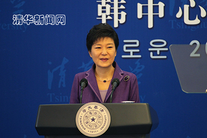 当韩国总统朴槿惠身着一袭紫色套装、面带温和的微笑,以字正腔圆的中文开始演讲时,在场师生们报以热情的掌声。
