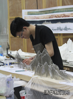 黄齐成本科毕业作品《乐山乐水》,就是在抒发对和谐安宁的精神世界的向往、追求之情。中国传统文化中,“山水”一直与古代文人的精神内涵息息相关,它代表着文人的智慧与情操,也体现着人与自然间的感应交流,正所谓“知者乐水,仁者乐山。知者动、仁者静。知者乐,仁者寿”。因此黄齐成选择中国传统山水为切入点,意在表现传统要素。但仅此,他觉得还不够,“如果为了传统而传统,最终作品老套、单调,我希望能将传统东西有所转化,通过自我思想意识将传统之物转化为传统根源与现代意蕴兼备的作品。”