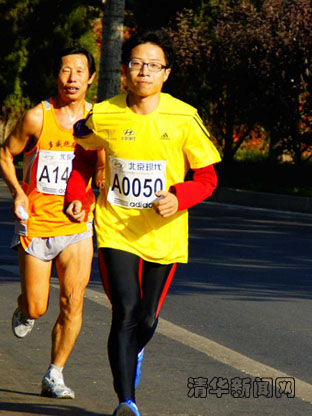 “后半程中每跑一步都要咬紧牙关,好在有清华志愿者和啦啦队队员们为我们打气加油。”李晨曦笑着说。在马拉松赛道的两旁,分布着不少清华的物资补充点。每当有别着“清华”袖章的参赛者跑过,总会听到一声声的“清华加油!”对李晨曦而言,在这场孤独的战役中,来自清华的声音给予了他许多力量与支持。