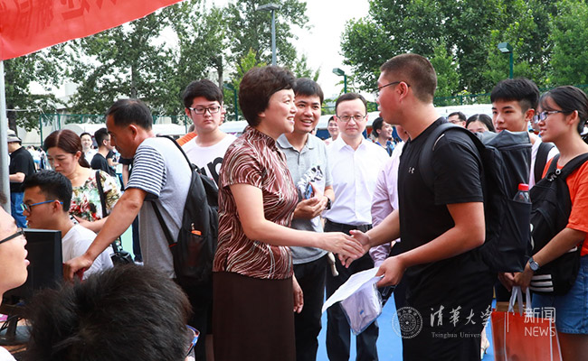 校党委书记陈旭与新同学亲切交谈