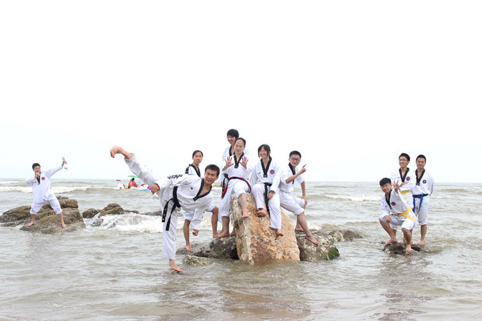 图为跆拳道协会同学组织沙滩训练。
