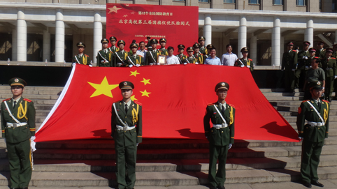 图为国旗仪仗队同学参加北京高校国旗仪仗队检阅式。