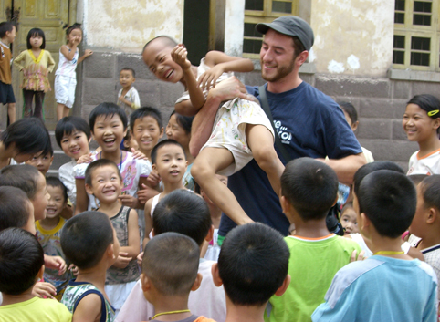 中美大学生暑期扶贫支教的留学生和孩子们在一起。