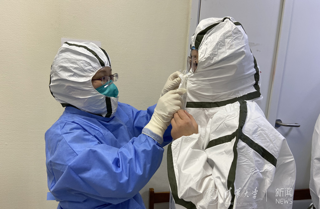 二附院一名医生和一名护士准备进入隔离病房采集患者的检验标本