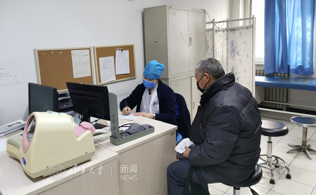 校医院内科急诊大夫在接诊病人