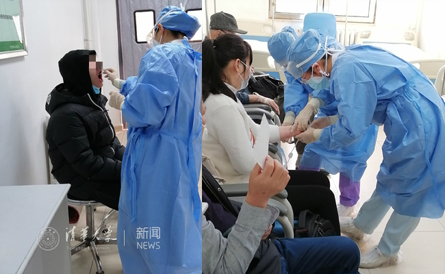 一附院医护人员为患者扎点滴和采咽拭子