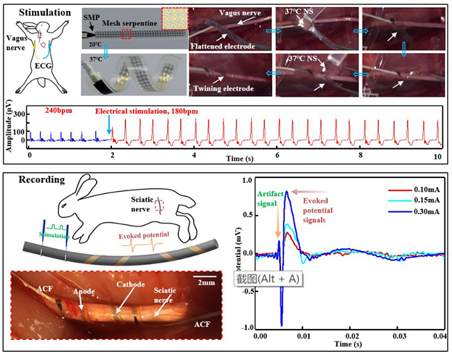 图4 基于柔性混合电子技术的自攀爬三维螺旋电刺激器件