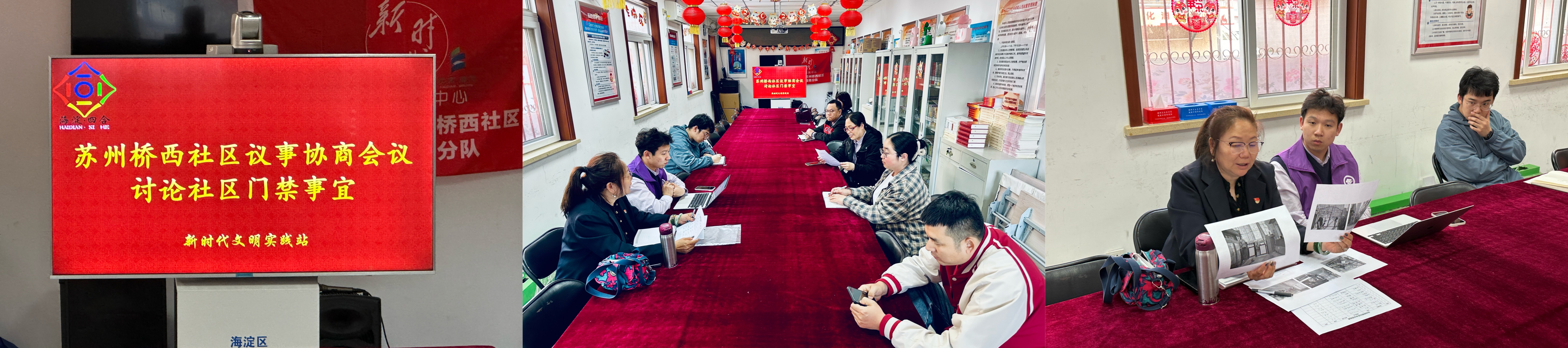 4月15日,志愿者们参加门禁协议社区议事协商会,同海淀街道社区建设科工作人员、社区居委会工作人员、社区律师、派出所民警一道,与门禁公司工作人员协商纠纷解决事宜。在以法律法规为底线、以维护居民利益为原则、以合作互惠为考量的讨论下,双方达成一致意见。4月22日至24日,志愿者们跟进相关协议的续签问题,对续签协议条款提出有关建议。