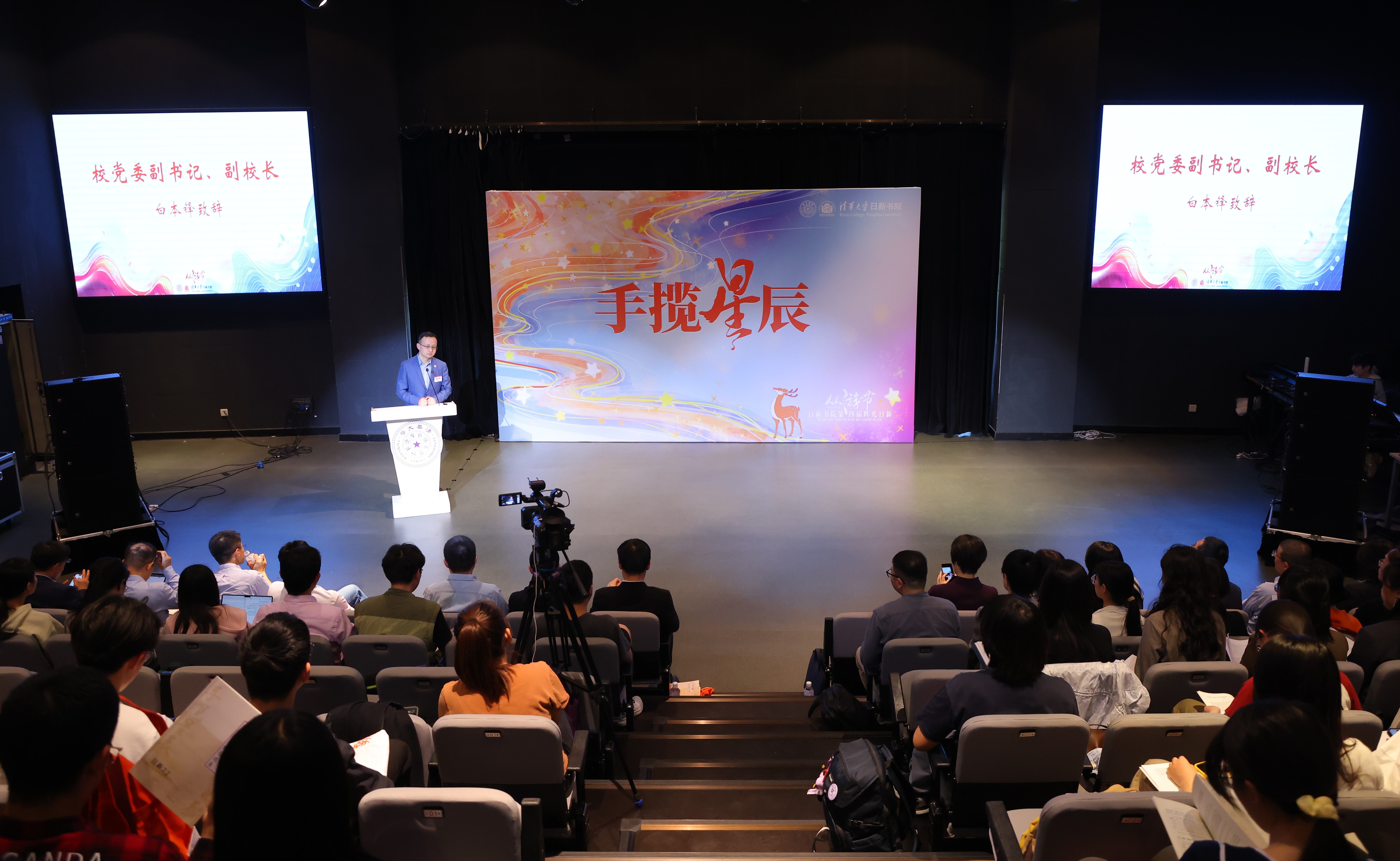 4月17日,日新书院第四届“辉光日新”从游节在新清华学堂实验剧场举行。校党委副书记、副校长白本锋参加活动并致辞。